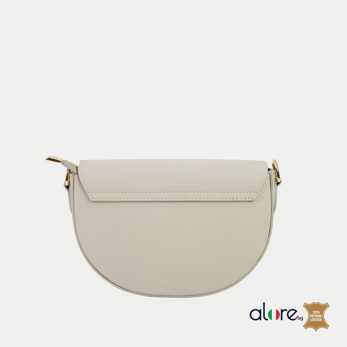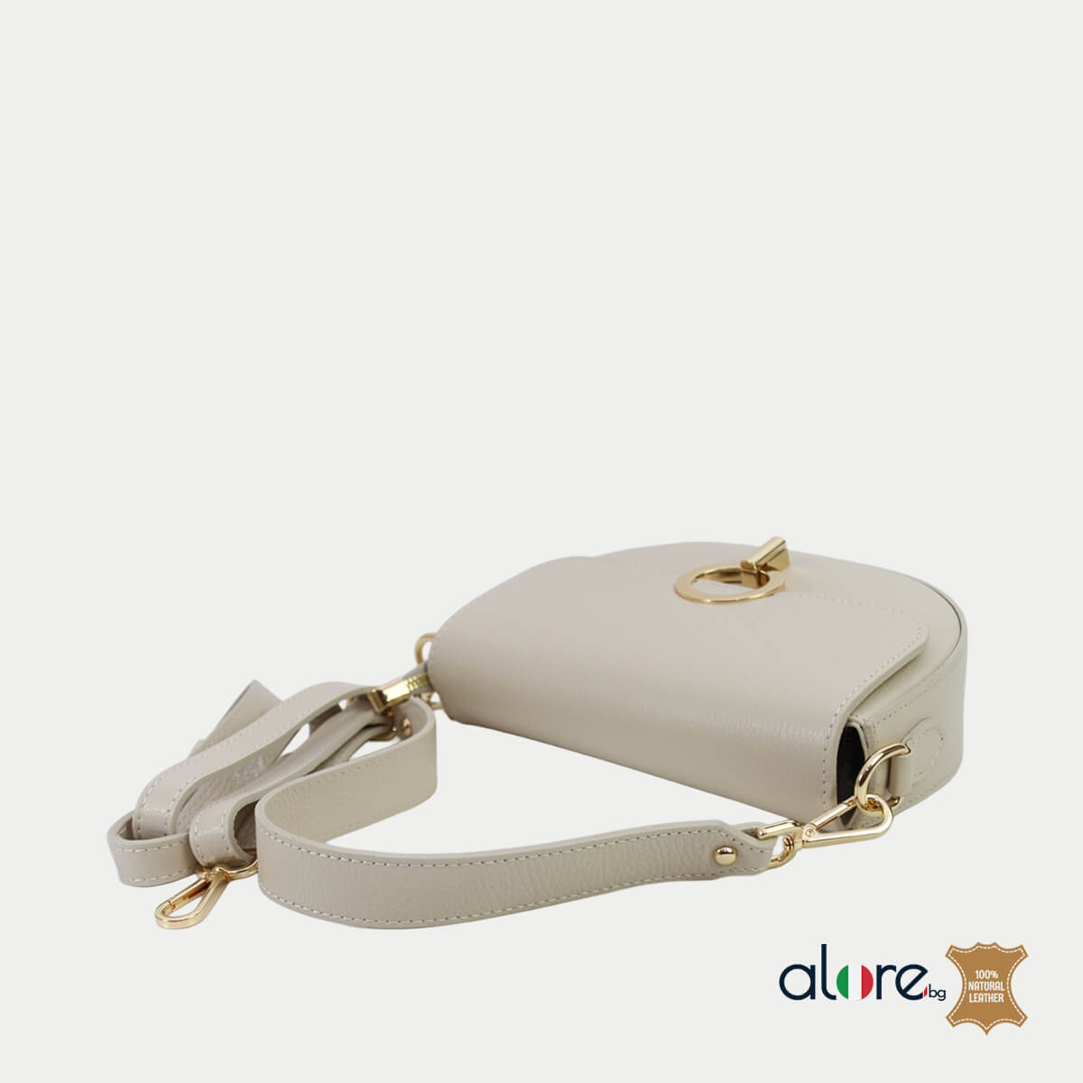 Затваря се с капаче със закопчалка. Разполага с едно отделение, което се затваря с цип, за по-голяма сигурност. Металните елементи са в красив златен цвят.