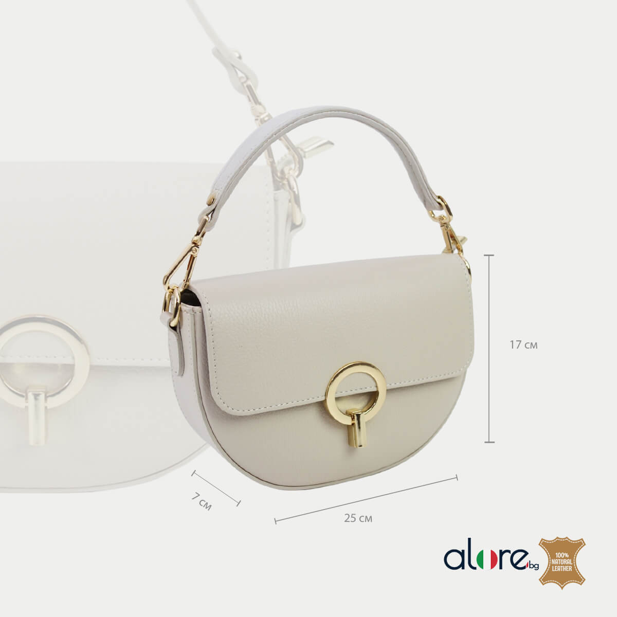 Малка дамска чанта Alegra е създадена да допълни и подчертае всеки тоалет. Може да се носи на рамо както и през глава, благодарение на двете си дръжки. Изработена е с твърди страни, което й позволява да запазва формата си при носене.