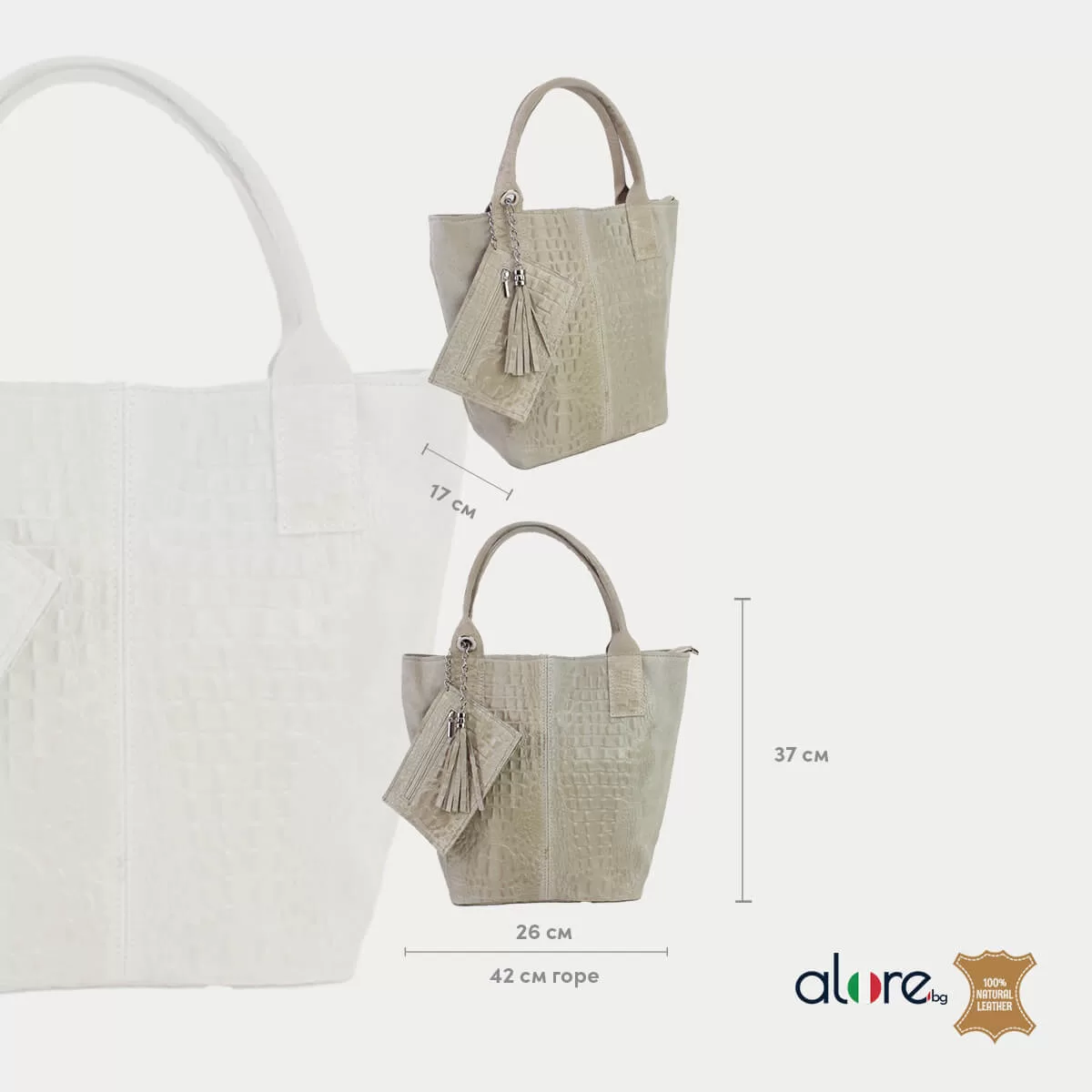 Дамска чанта Fabiana е изработена от естествена кожа велур. Може да се носи на рамо, благодарение на двете и средно дълги дръжки.