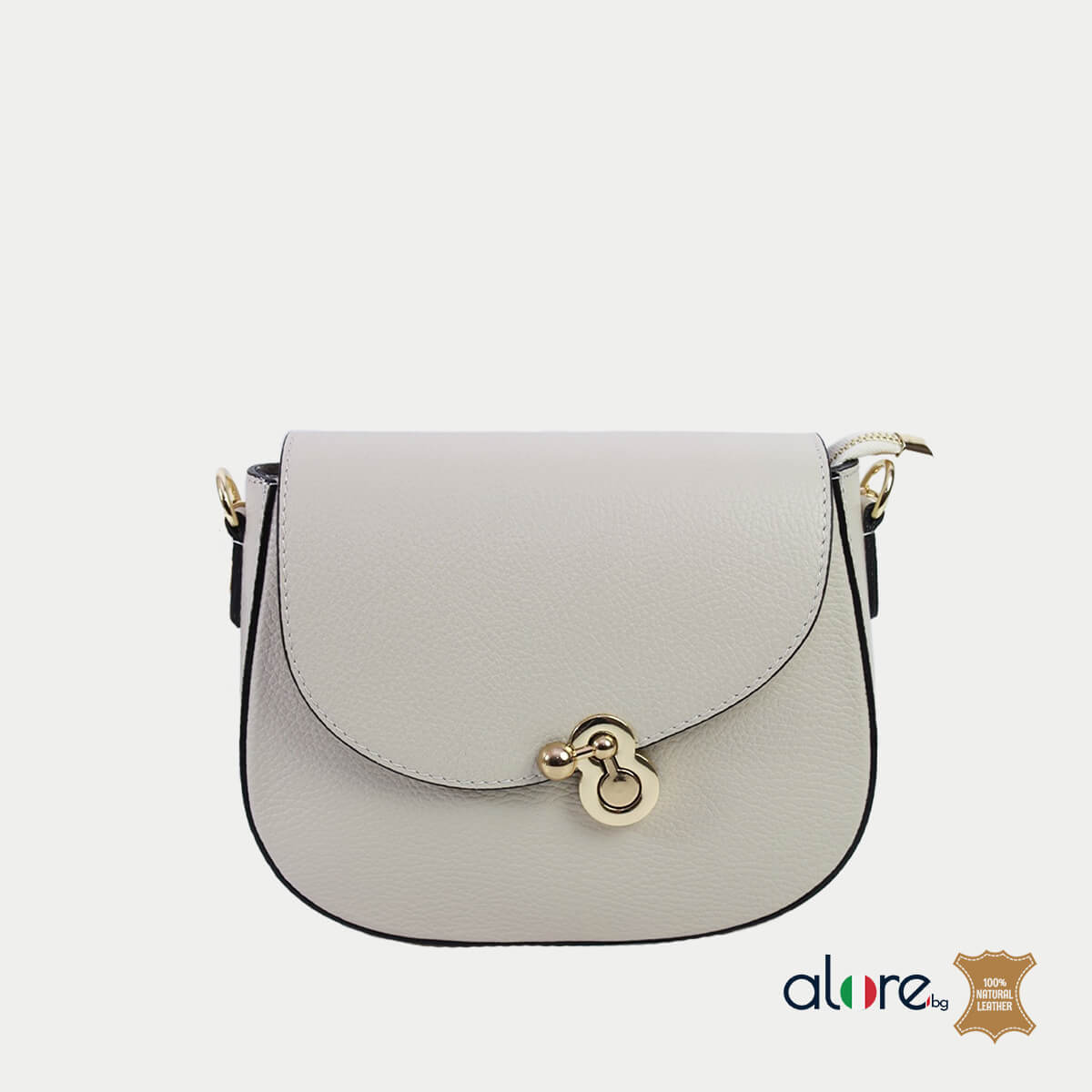 Затваря се с помощта на закопчалка на капака и цип за по-голяма сигурност. Отвътре разполага с едно отделение от хастар, в което ще откриете скрит джоб за документи с цип. Металните елементи са в златно.