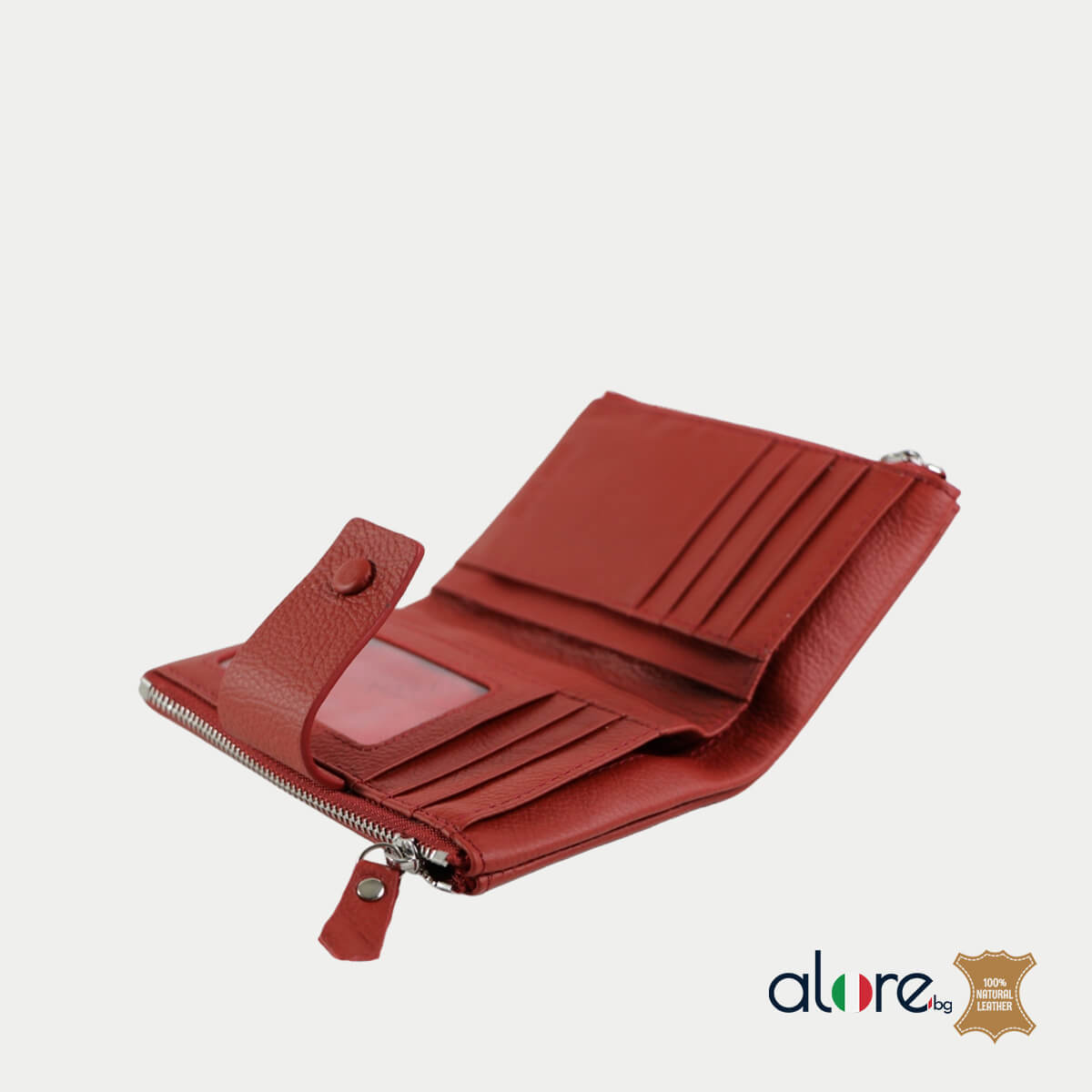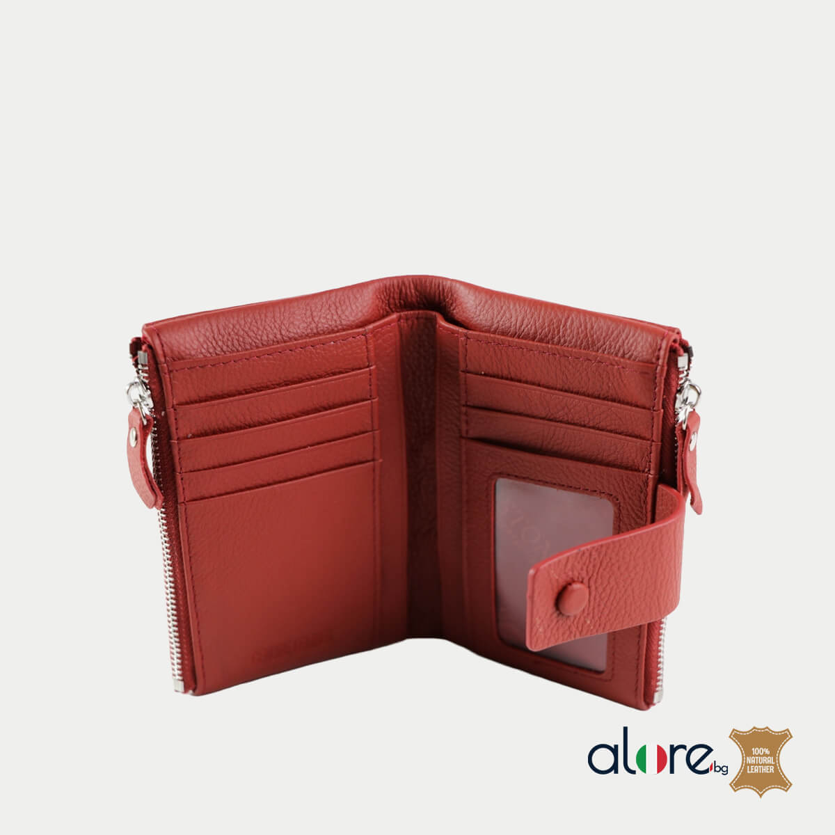 Отваря се лесно с помощта на копче, което отваря на 2 части цялото портмоне.