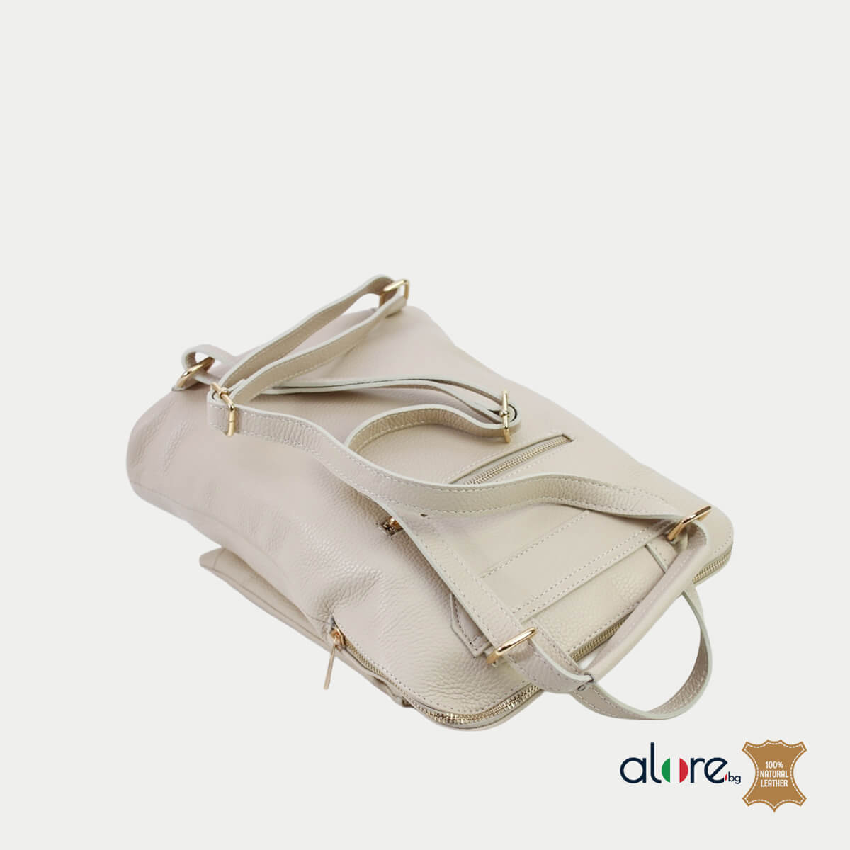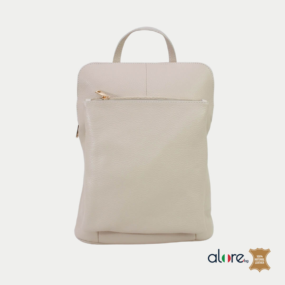 Ritta е изработена от естествена шагренирана кожа и носи духа на приключението. Може да се на рамо или на гръб, като раполага с две регулируеми дръжки.